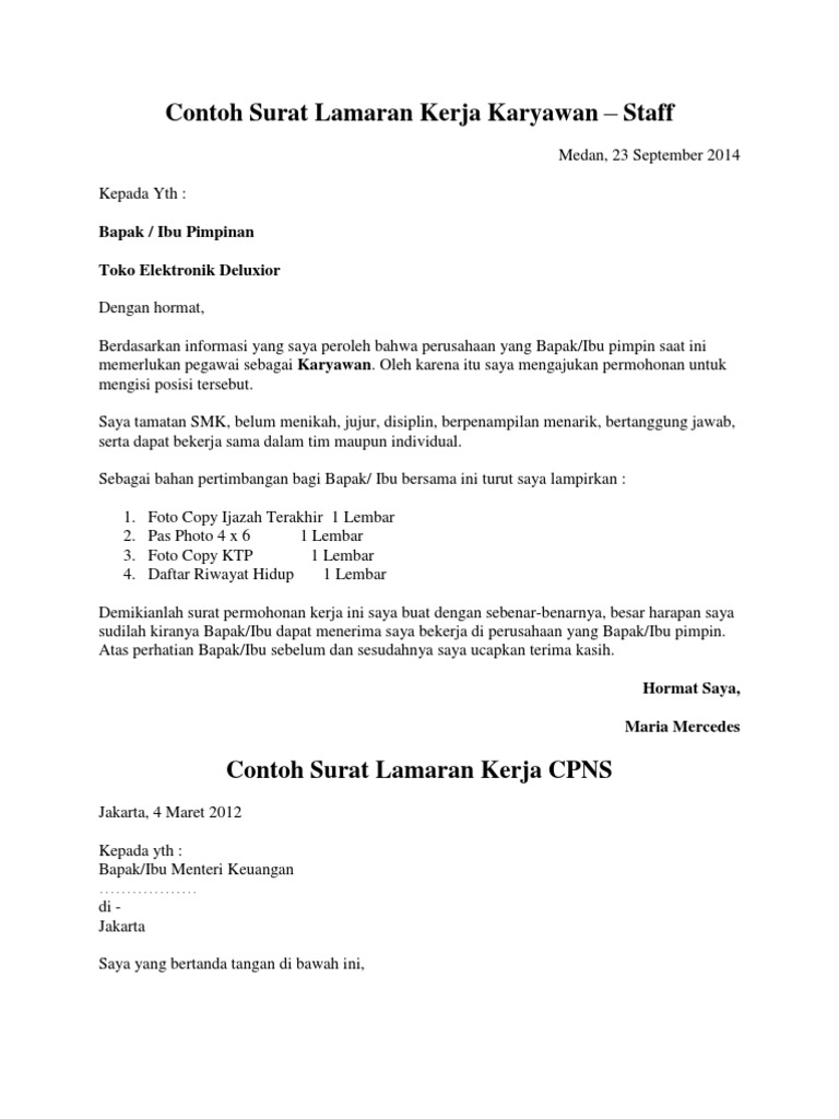 Para pelamar pun harus menyanggupi semua aturan dan persyaratan tersebut. Sekarang banyak perusahaan yang juga menginginkan karyawannya pintar berbahasa inggris. Bahwa perusahaan bapak/ibu yang sedang pimpin saat ini memerlukan karyawan tambahan sebagai marketing. Contoh surat lamaran kerja di bank bumn dan swasta. # contoh surat lamaran kerja di bank, pt, dan perusahaan swasta. Panduan cara membuat surat lamaran seperti lamaran umum, fresh graduate, via email, tulis contohnya surat lamaran kerja menjadi karyawan dengan sumber dari iklan. Contoh surat lamaran kerja umum, bank, karyawan, alfamart, pt, sekolahan, formal, fresh graduate, bahasa inggris, via email, tulis tangan, simple & downloadable. Para pihak penerima pegawai atau karyawan menerapkan berbagai aturan untuk para pelamarnya. Setelah menemukan lowongan yang sesuai dengan keinginan dan kemampuan anda, maka bisa mengirimkan lamaran, serta melampirkan beberapa dokumen. Contoh surat lamaran kerja perusahaan swasta. Contoh surat lamaran kerja karyawan perusahaan. Membuat surat lamaran kerja memang terlihat gampang. Contoh surat lamaran kerja yang baik dan benar kedua diatas, sangat berguna buat yang ingin melamar pekerjaan ke perusahaan perusahaan yang besar dan kompetitif, contoh bank mandiri dan bni yang mencari karyawan di.