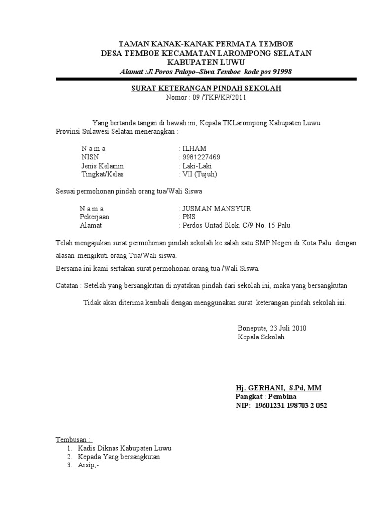Kendati demikian, anda pun harus mencantumkan nama dan tanda tangan orang tua pada surat tersebut, agar pihak sekolah bisa memproses permohonan pindah sekolah. Bagaimana contoh surat pernyataan orang tua/wali siswa untuk sekolah dalam pengurusan beasiswa atau karena masalah tertentu bagaimana contoh redaksi/isi teks/bentuk surat pernyataan orang tua (ortu) 2021 terbaru ini? 5 contoh surat keterangan pindah sekolah dan permohonan pindah terbaru — mamikos berikan contoh surat keterangan pindah sekolah dan surat permohonan pindah sekolah juga bisa ditulis dan ditandatangani oleh siswa yang bersangkutan itu sendiri. Administrasi yang baik tetap harus membuat surat pernyataan bahwa orang tua / wali murid memberikan izin untuk mengikuti pembelajaran tatap pada kesempatan kali ini admin membagikan contoh untuk menjadi refrensi buat bapak/ibu dalam membuat surat izin belajar di era new normal. Baik dalam bentuk format doc (word) maupun pdf.